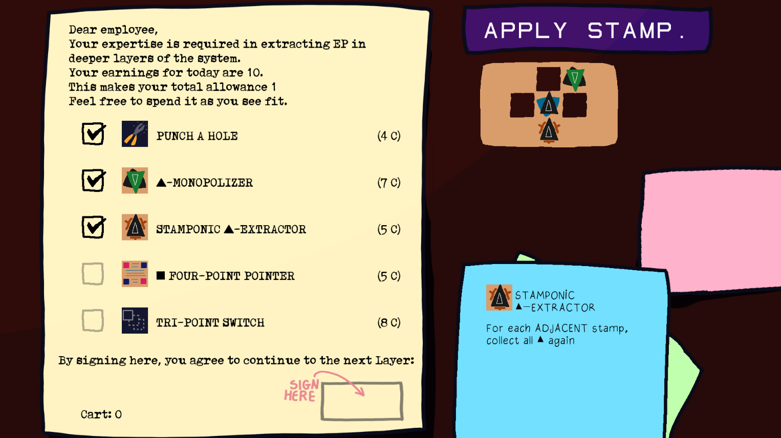 - Stamping tiles on the EXTRACTION MASK CARD. Stamps activate during EP extraction and have various effects that increase your EP yield